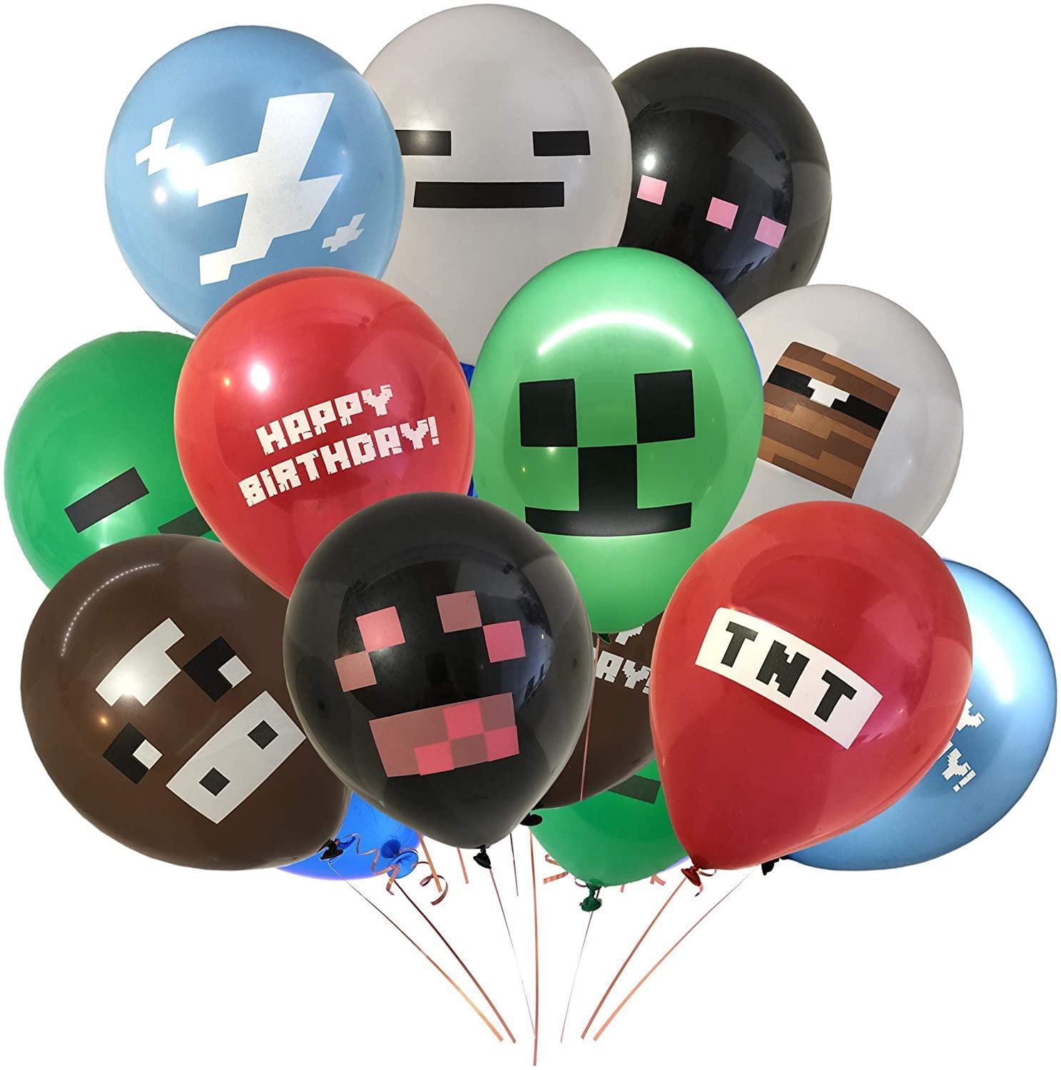 24 Pieces Of Pixel Miner Crafting Style Gamer Party Balloons Large Double Sided 12 Latex Balloons Gamer Birthday Party Supplies Tnt Cow Ghost Cloud Creepah Spider Party Decorations Walmart Com